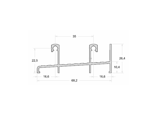 TRILHO INFERIOR PORTA REBAIXADA LINHA SUPREMA, 6 METROS.