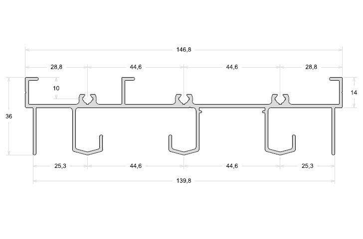 TRILHO SUPERIOR 3 PLANOS LINHA OURO 32, 6 METROS.