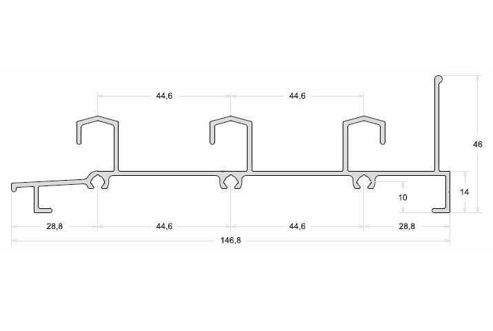 TRILHO INFERIOR 3 PLANOS LINHA OURO 32, 6 METROS.